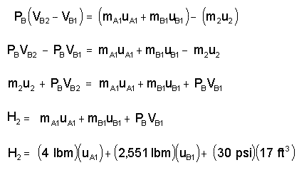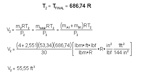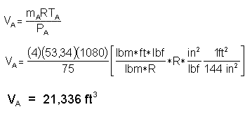 mA = 4 lbm., TA = 1080 R , PA = 75 lbf/pulg2 y VB = 17 pies3 , TB = 80ºF, PB = 30 lbf/pulg2.