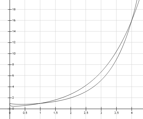 Curvas de las funciones \( \left( \sqrt{x} \right)^x\) y \(x^{\sqrt{x}}\)