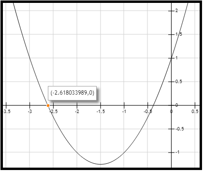 $$ x_{2} = \frac{-3 - \sqrt{5}}{2} = -2.62$$