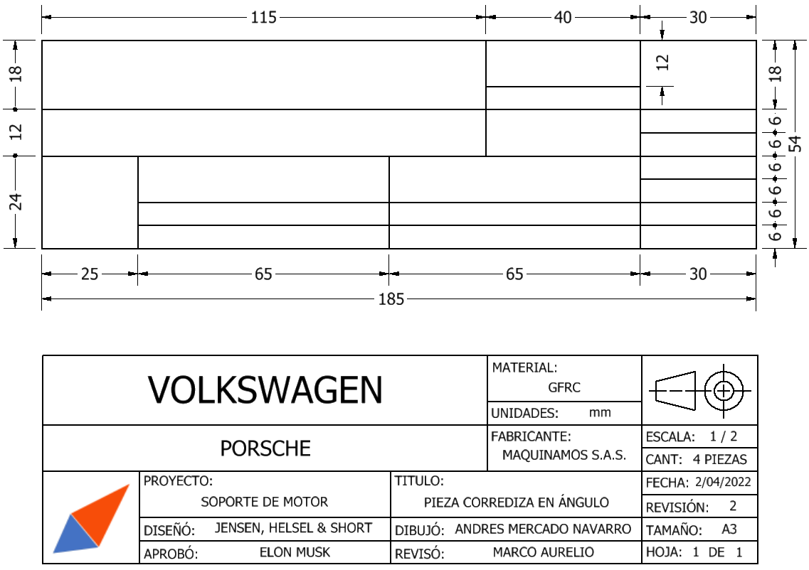 - MATERIAL: mismo material que figura en el plano de la parte. Puede indicarse que no aplica si es una parte a comprar (N/A).