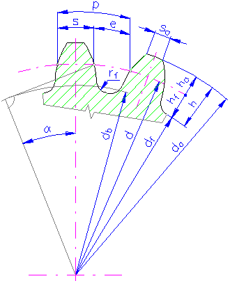 12. Altura del diente-H. Es h en la imagen. Distancia radial entre la raíz y la parte externa del diente. H=(OD-RD)/2