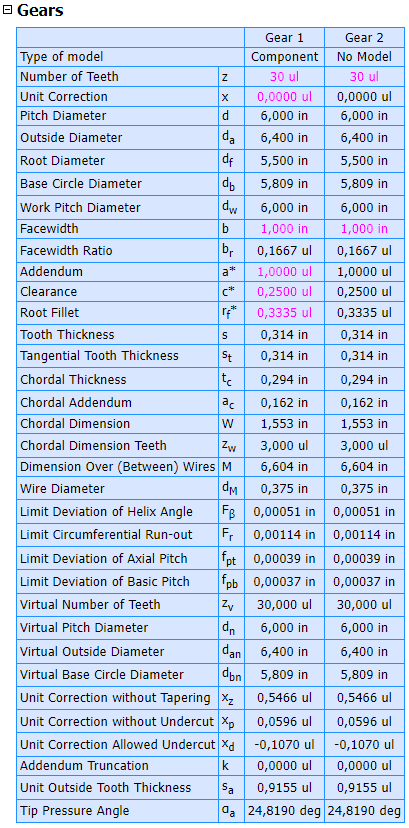 De estas definiciones se desprende que el módulo es igual al recíproco del paso diametral y por lo tanto no es su equivalente dimensional métrico. Si se conoce el paso diametral, se puede obtener el módulo (use las mismas unidades para este cálculo). A continuación (mire la tabla más abajo) se resumen algunas (faltan varias) definiciones y fórmulas de engranes rectos para ángulos de presión de 14.5 o 20 grados. Por favor tomarla sólo como referencia. Para mayor confiabilidad en los datos y definiciones consultar bibliografía especializada en el tema.