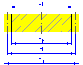 7. Diámetro de raíz-RD. Es df en la imagen. Diámetro en la parte inferior del diente. RD=PD-2*DED RD=PD-2*DED