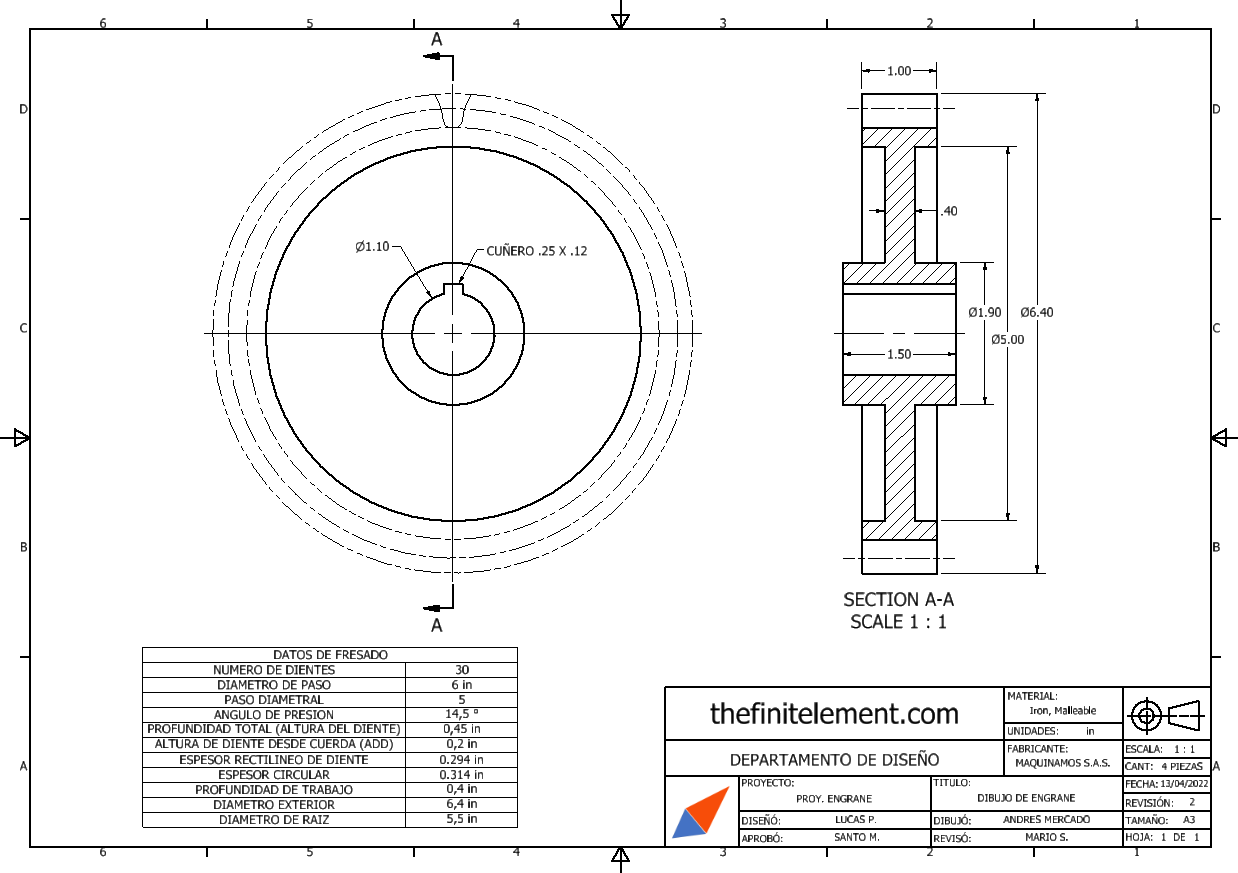 EJEMPLOS DE ENGRANES RECTOS SIMPLES EN PULGADAS
