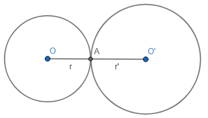 2. Tangentes exteriores: si y sólo si \( OO’ = r + r’ \).