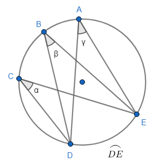 $$ \alpha=\beta=\gamma=\frac{\overset{\LARGE\frown}{DE}}{2} $$