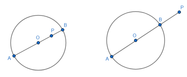 La distancia del punto P a la C(O; r) es la distancia entre P y el extremo de dicho diámetro que esté más próximo a P, en la gráfica por ejemplo es PB.
