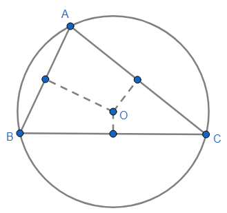 TEOREMA: Por tres puntos A, B y C no alineados, pasa una y sólo una circunferencia que tiene por centro el circuncentro O del triángulo ABC.