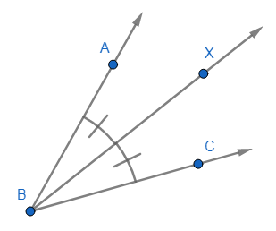 | \( \overleftrightarrow{BX} \) es bisectriz de \(\angle ABC \leftrightarrow \angle ABX = \angle XBC = \angle ABC/2 \) |