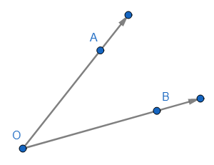 ÁNGULO: Es la figura formada por dos semirrectas que tienen el mismo origen. Si ellas son \( \overrightarrow{OA} \) y \( \overrightarrow{OB} \), se denota por \( \angle AOB \) o \( A\hat{O}B \). El origen O es el vértice del ángulo y las semirrectas son los lados del ángulo.