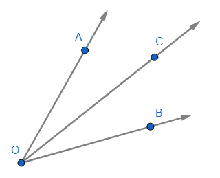 SUMA DE ÁNGULOS: Si \( \angle AOC \) y \( \angle COB \) son adyacentes, entonces el \( \angle AOB \) es la suma de los ángulos \( \angle AOC \) y \( \angle COB \):