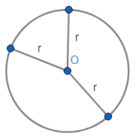 CIRCUNFERENCIA: Dados un plano \( \pi \), un punto O en dicho plano, y un número real positivo r, (r > 0), se llama ''Circunferencia de centro O y radio r en el plano \( \pi \)'' y se denota por: ''C(O;r)'', al conjunto formado por todos los puntos P del plano \( \pi \) tales que su distancia al centro es igual a r, es decir, tales que OP = r.