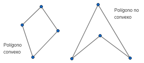 POLÍGONO CONVEXO: Un polígono es convexo si al unir dos puntos cualesquiera situados sobre dos lados distintos, el segmento está contenido en el polígono. En caso contrario es no convexo.