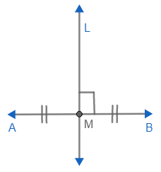 Si M es el punto medio de \( \overline{AB} \) y \( \overleftrightarrow{L} \perp \overline{AB}\) entonces \(\overleftrightarrow{L}\) es mediatriz de \( \overline{AB} \):