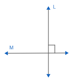 RECTAS PERPENDICULARES: Dos rectas secantes L y M son perpendiculares, \( L \perp M\), si forman por lo menos un ángulo recto. En caso contrario son oblicuas.