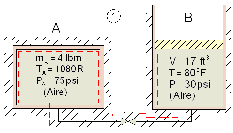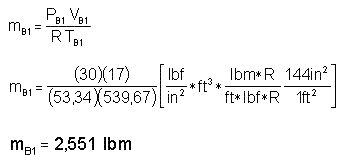 mA = 4 lbm., TA = 1080 R , PA = 75 lbf/pulg2 y VB = 17 pies3 , TB = 80ºF, PB = 30 lbf/pulg2.